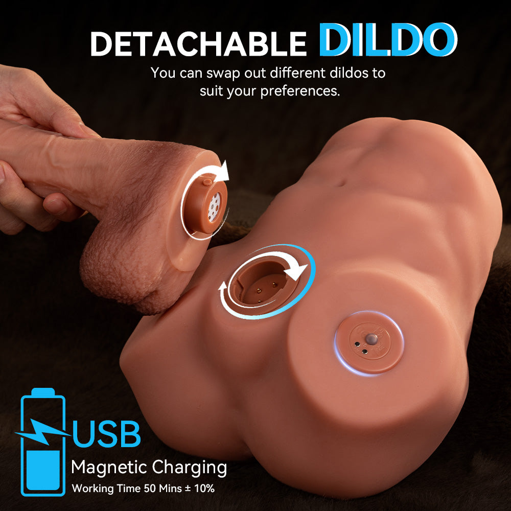 This sex torso dildo machine comes with detachable, interchangeable dildos, to satisfy your unique desires. Designed specifically for G-spot stimulation, dildo features powerful thrusting and vibrating functions with 7speeds and 3frequencies, providing deep internal stimulation that mimics real-life penetration. Use the dildo alone for solo pleasure or attach it to the sex doll torso for full-body fantasy fulfillment.